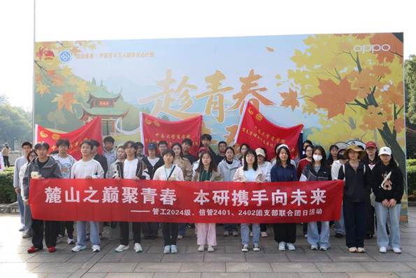 为响应中南大学校团委号召,促进本研学生交流融合,2025年11月16日,商学院管工2024级、信管2401与信管2402团支部联合举办“麓山之巅聚青春,本研携手向未来”主题团日活动。六十余名团员青年共登岳麓山,在攀登中锤炼意志,在对话中启迪成长。活动伊始,同学们在岳麓山校区图书馆前集合,整队前往肖劲光铜像纪念园。登...