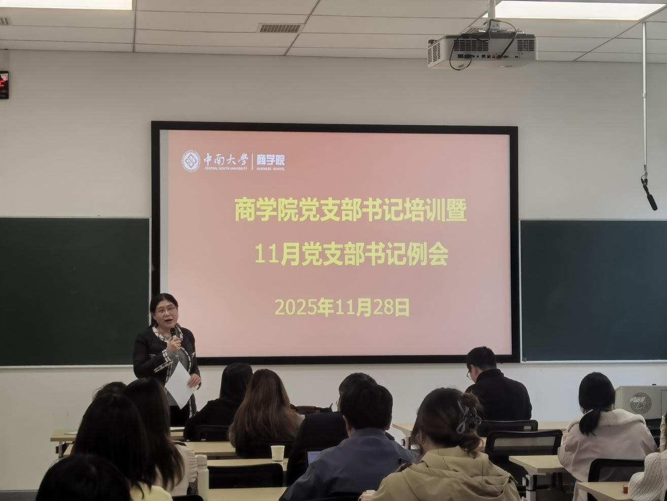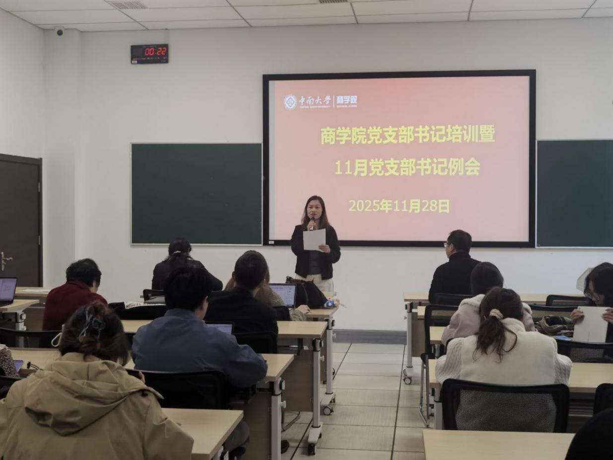 11月28日下午,商学院召开党支部书记培训暨11月支部书记例会。会议由学院党委书记刘咏梅主持,各党支部全体支委及党群办工作人员参会。
