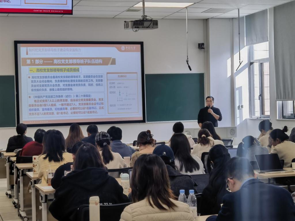 随后,马克思主义学院胡文根老师开展党支部工作实务培训。他聚焦党支部标准化建设核心要点,围绕支部日常管理、组织生活开展、党员教育培养等方面,结合典型案例进行细致讲解,针对性解答支部工作中存在的难点、堵点问题,为今后规范开展党支部建设工作提供了清晰指引和实操遵循。