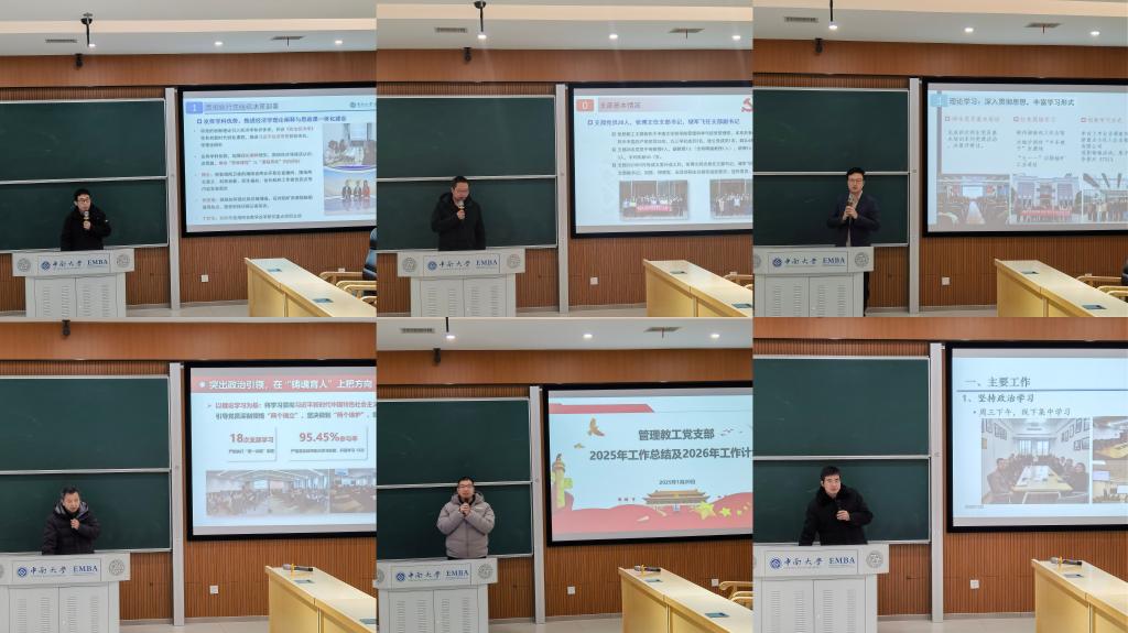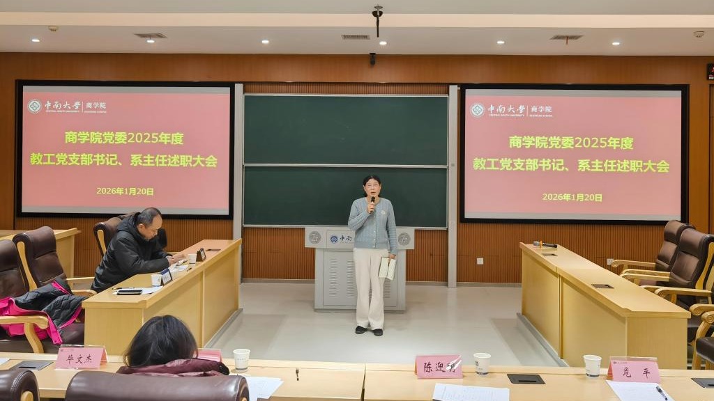 1月20日下午,商学院党委在江湾楼福达厅召开2025年度教工支部书记及系主任述职评议考核大会。会议由党委书记刘咏梅主持,全体党委委员、教工党支部书记及系主任、党群办工作人员参会。
