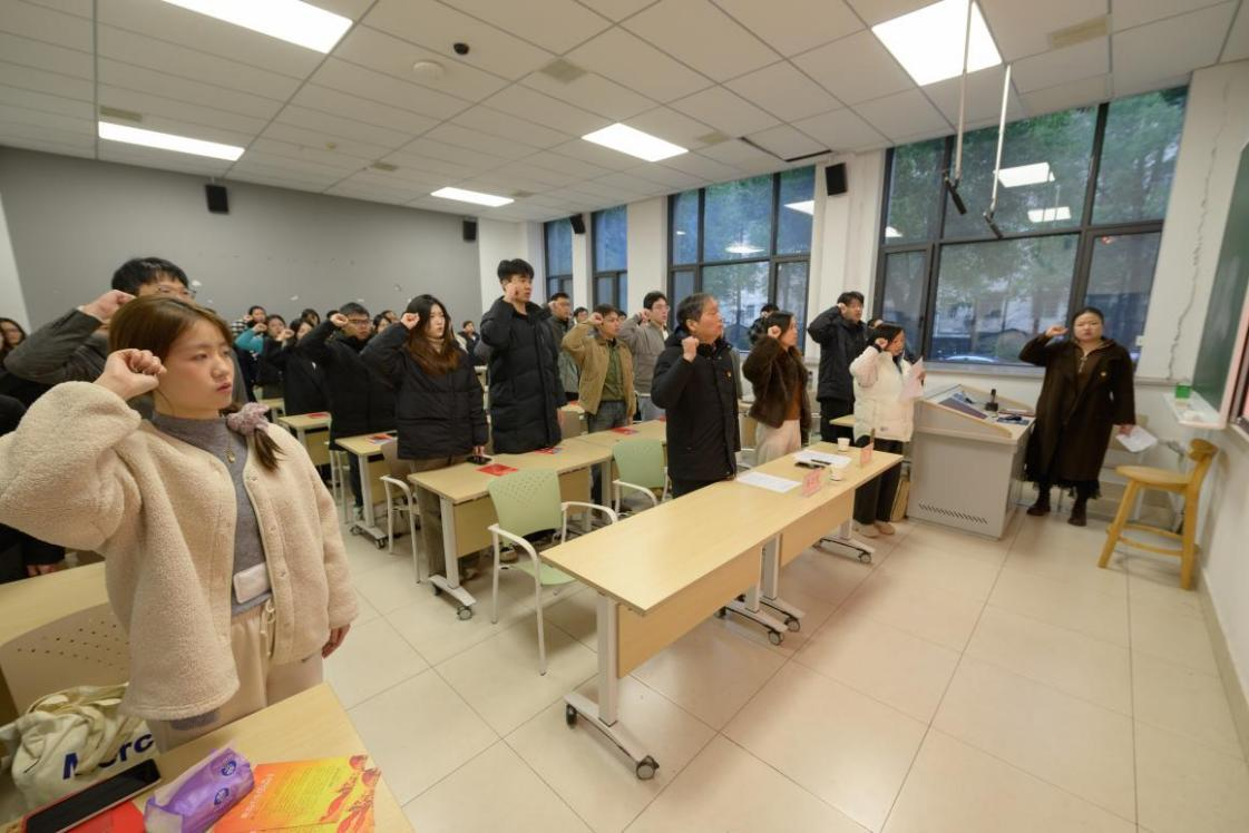 培训在庄严的《国际歌》中开幕。全体人员奏唱《国际歌》,铿锵旋律凝聚奋进力量。吴雪浓老师宣读了新接收的预备党员名单,现场响起热烈掌声。在培训班班导师刘艳斌同志的带领下,全体预备党员面对党旗,紧握右拳郑重宣誓,在入党誓词中更加坚定为党的事业奋斗终身的决心。