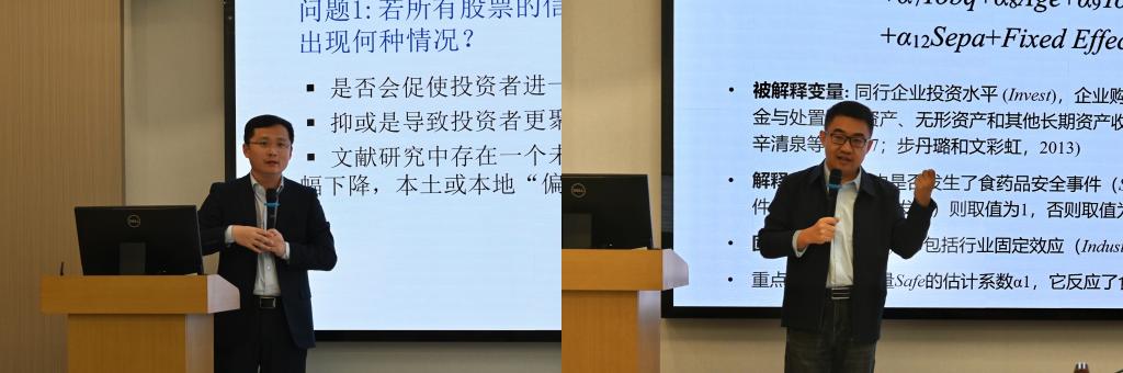 最后,许浩然副教授从企业投资视角,报告了食药品安全事件对行业同行的溢出效应。他指出,行业内个体企业行为的影响溢出是学术研究的薄弱点。此类安全事件不仅直接冲击涉事企业,还会通过市场传导机制,影响同行业其他企业的投资决策。报告深入剖析了这一传导机制,为企业风险管理与投资决策提供了重要的理论支撑和实践指导。