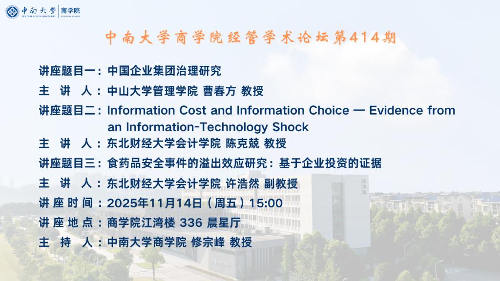 中南大学商学院经管学术论坛第414期——中山大学管理学院 曹春方 教授