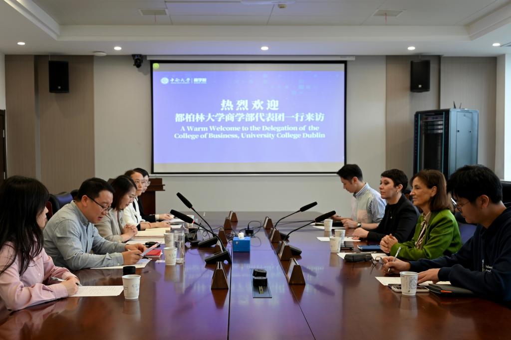 9月26日下午,都柏林大学商学部副部长兼斯莫菲特研究生商学院院长Federica Pazzaglia教授率代表团访问中南大学商学院,双方在江湾楼368会议室举行合作洽谈。此次会谈基于两校十年合作积累的深厚基础,聚焦现有合作项目的提质升级与新合作方向的拓展落地,推动两院战略伙伴关系迈上新台阶。团队成员包括斯莫菲特研究生商学院招生与行政主管Elaine Ahern、中国处处长兼东亚中心总监赵嘉文(线上参会)、副处长兼副总监俞兆源、高级合作伙伴关系官员陈晨。商院主管外事副院长危平教授、主管研究生工作副院长汪阳洁教授、对外交流与国际认证办公室主任万萍出席会谈。