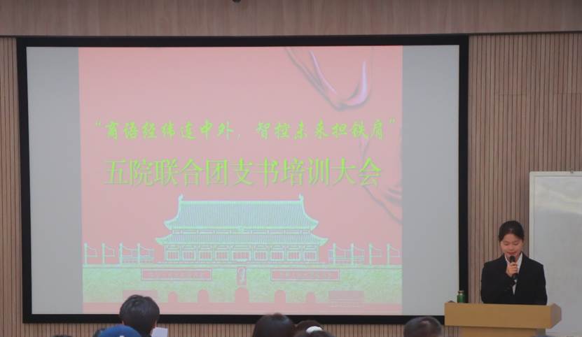 为贯彻党的二十大精神,提高青年团员思想认知,培养团支书工作能力与综合素质,中南大学商学院、外国语学院、机电工程学院、自动化学院、邓迪国际学院于11月8日晚在商学院江湾楼方正汇爱厅共同举办了“商语经纬连中外,智控未来担铁肩”五院联合团支书培训大会。