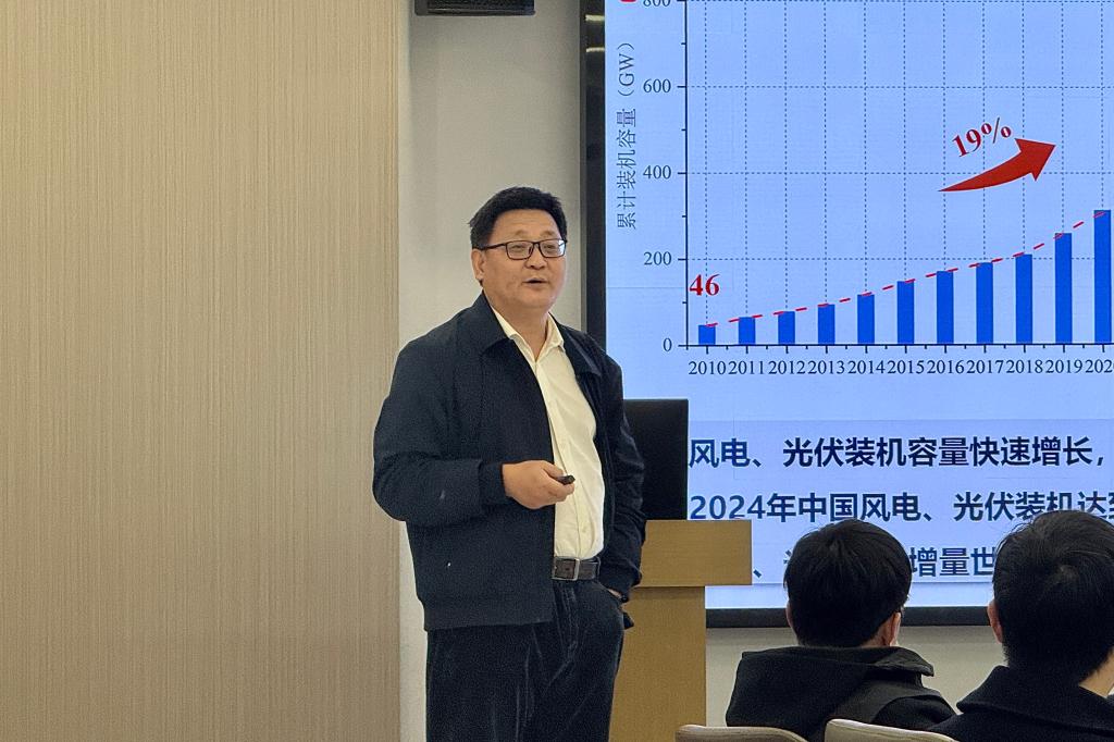 互动环节,师生围绕光伏用地保护、风机选址阈值等热点问题深入探讨,张教授结合调研经验与数据模型细致解答,强调新能源绿色发展需兼顾能源供给与生态安全,注重多元协同。