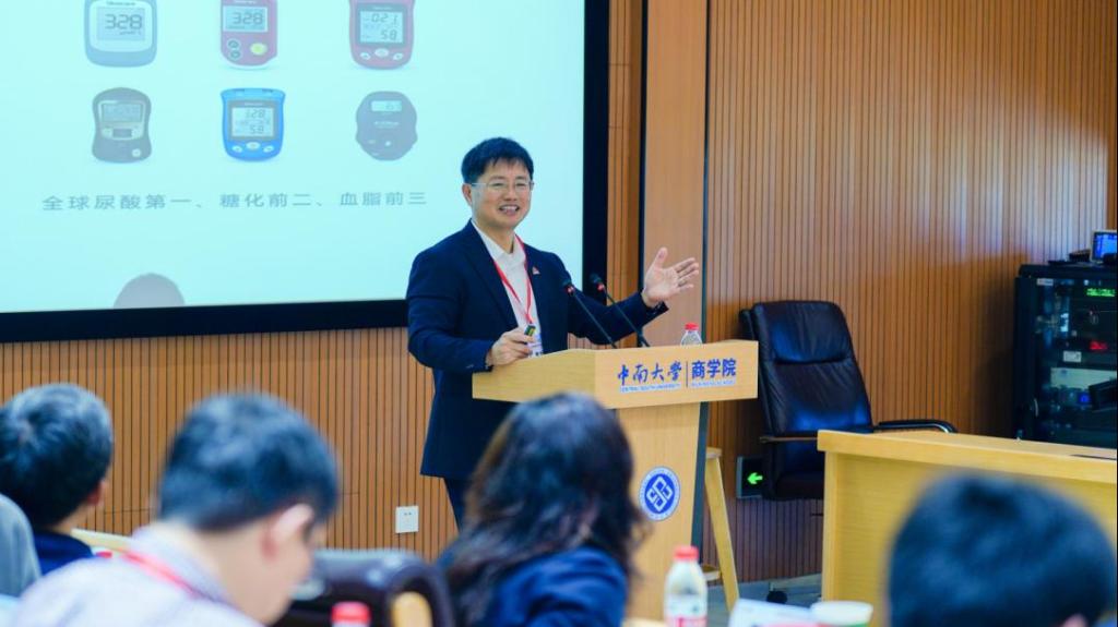三诺生物传感股份有限公司李少波董事长作题为“新兴产业企业成长之道:从‘中国血糖仪的普及推动者’到‘全球领先的糖尿病数字管理专家’”的报告,分享企业赛道选择、技术创新、全球化布局与数字化转型实践。华东理工大学阎海峰教授、北京大学易希薇副教授、东北财经大学韵江教授、哈尔滨工业大学王铁男教授参与讨论交流。